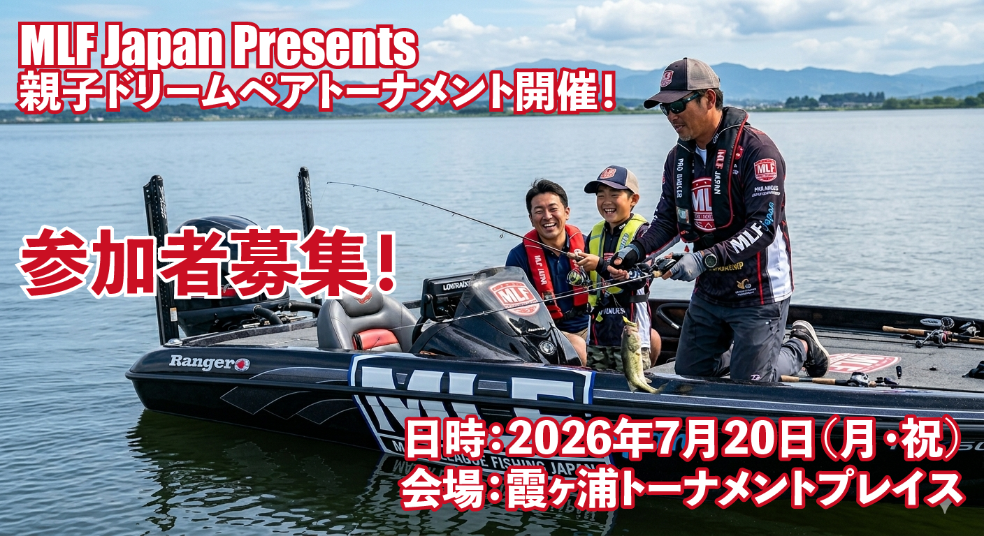 内容:MLF Japanに参戦する現役ボーター選手のバスボートに同乗し、ペアでバスフィッシングトーナメントに挑戦します。どの選手のボートに乗れるかは、抽選で決定します!