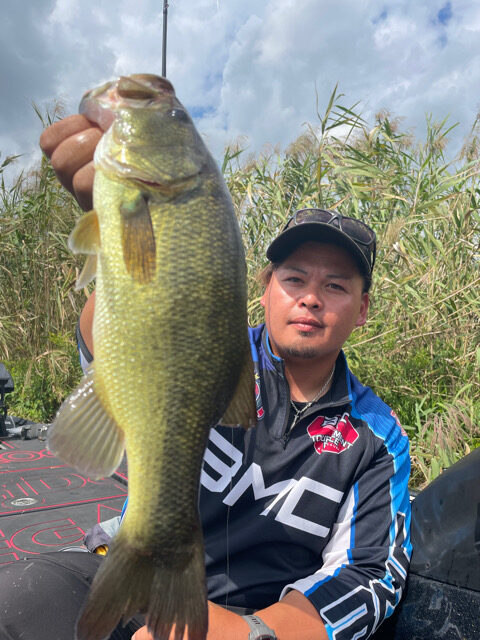 河口部のシャローフラットをコ・アングラーの鳥羽選手と協力し、バズベイトでテンポよく流していった。